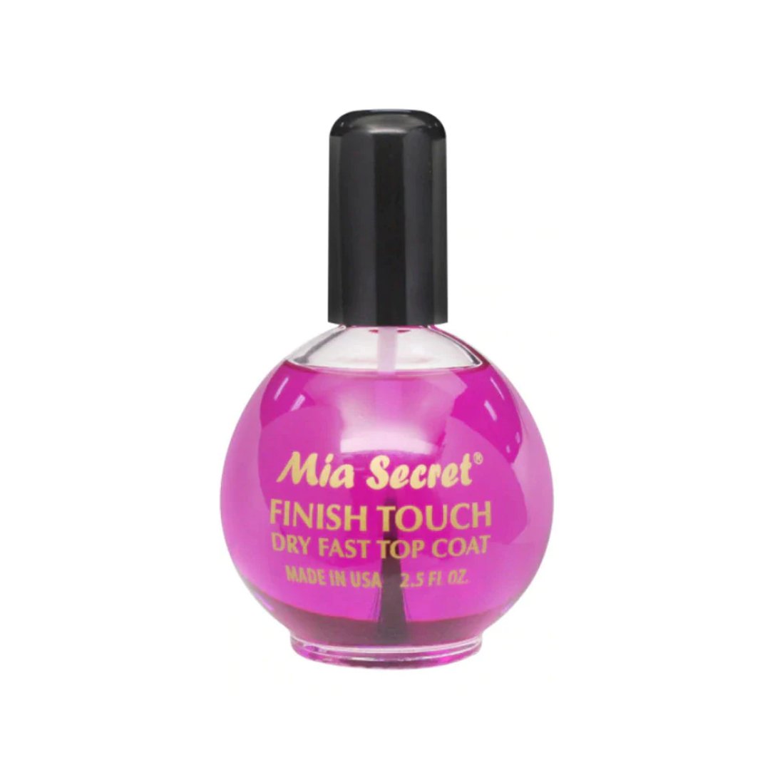 Mia Secrets Brillo Finish Touch 2.5 Oz es un sellador final de alto rendimiento. Ofrece un acabado ultra brillante y duradero que protege y realza el esmalte. Su fórmula avanzada extiende la vida de la manicura, asegurando un look profesional impecable y resistente al desgaste.