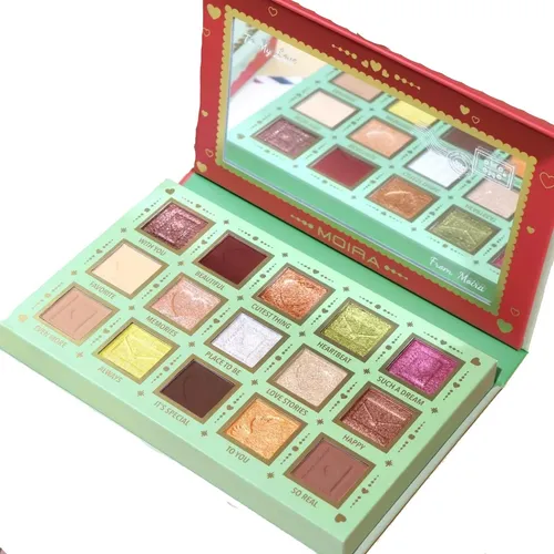 La paleta Moira Sombras ‘I’m Falling For You’ (Caja Verde) presenta tonos versátiles y altamente pigmentados en acabados mate y shimmer. Su fórmula de fácil difuminado y larga duración permite crear looks sofisticados, destacando la mirada con una armonía de verdes y neutros. Perfecta para expresión creativa.